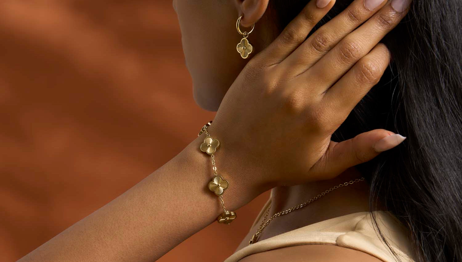 Lucky Leaf Necklace + Bracelet + Earrings 14k Gold Signature Set